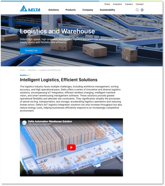 Within the Solutions section, content is organized from a macro to a micro perspective: starting from the value proposition for each industry, leading to solution offerings, and extending to success stories, features and benefits. This tiered approach also serves as a digital enablement tool for our internal teams, empowering colleagues to showcase Delta’s cross-departmental integration with greater professionalism during business proposals.