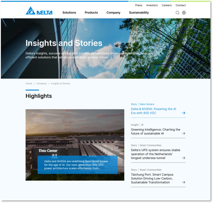Years of deep industry cultivation have provided Delta with a wealth of expertise and practical experience. The newly launched "Insights & Stories" section serves as our core platform for demonstrating thought leadership. Here, we transform technical implementation into influential industry perspectives, consistently building a library of industry insights, white papers, and success stories.