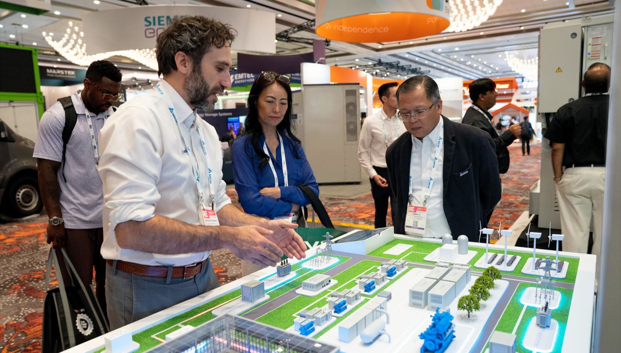 展出亮點之一是 台達數據中心微電網解決方案,具備基於虛擬同步發電機(VSG)的同步功能,以及小於 4 毫秒的即時控制反應。該先進系統整合再生能源、電池及發電機組,確保電能品質與電網韌性。在 AI 工作負載下,該方案可將電壓調節維持於 ±2% 以內,並實現無縫並/離網切換,展現台達如何以技術守護現代數據中心,滿足 AI 時代龐大的電力需求。解決方案資深產品經理 Shahin Firoozmand 與資深產品經理 Simon Yu,向展位訪客介紹微電網解決方案