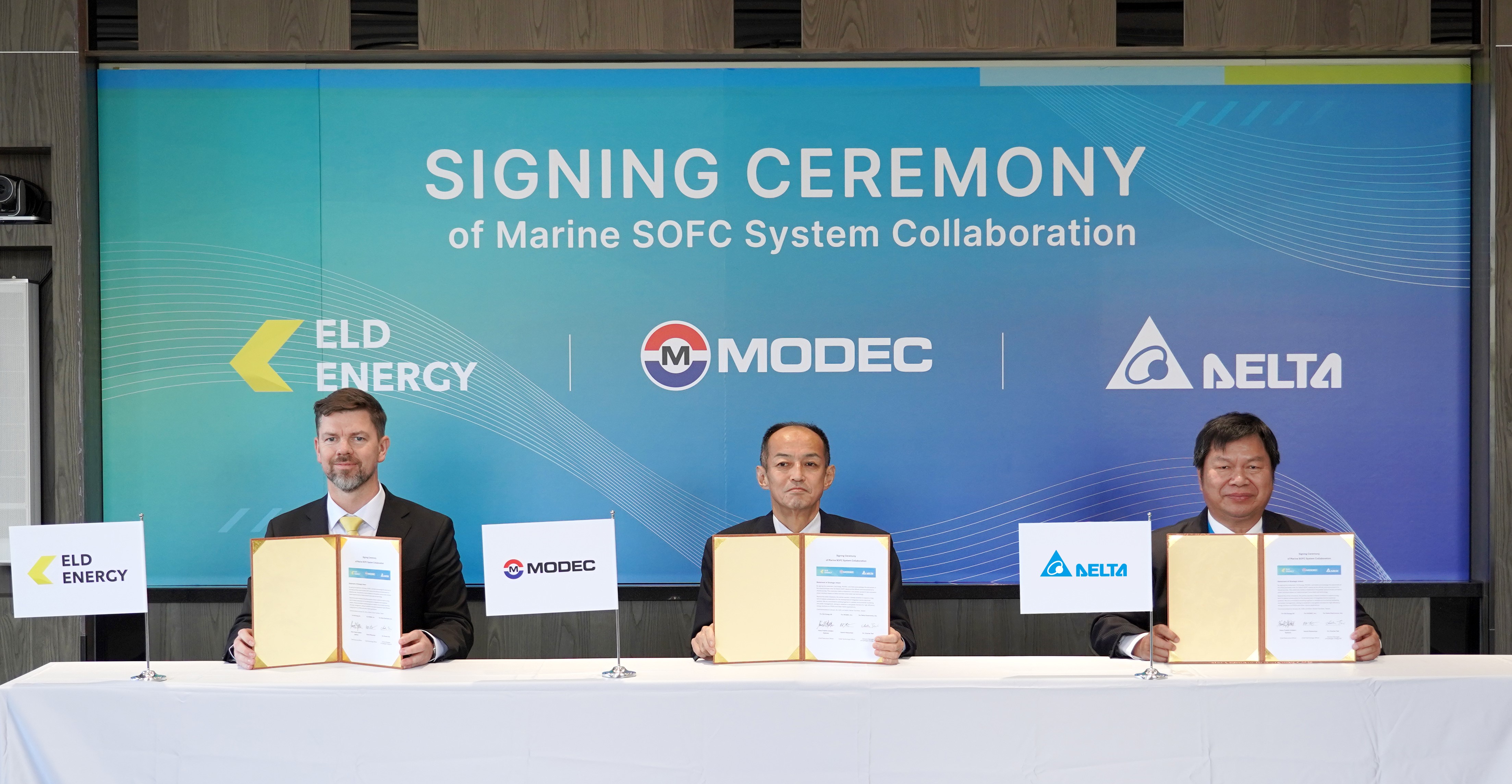 台達宣布與MODEC, Inc. (三井海洋開發) 及挪威燃料電池系統開發商Eld Energy AS (Eld Energy) 合作,由台達提供固態氧化物電堆 (Solid Oxide Stack)、功率調節系統 (PCS) 及變流器,透過Eld Energy整合於SOFC燃料電池系統中,導入浮式生產儲卸油船 (FPSO),預計於2027年完成試行120kW固態氧化物燃料電池,此合作為SOFC首度應用於FPSO上,為遠洋船舶及離岸能源相關發展奠定基礎,推動海上能源轉型。