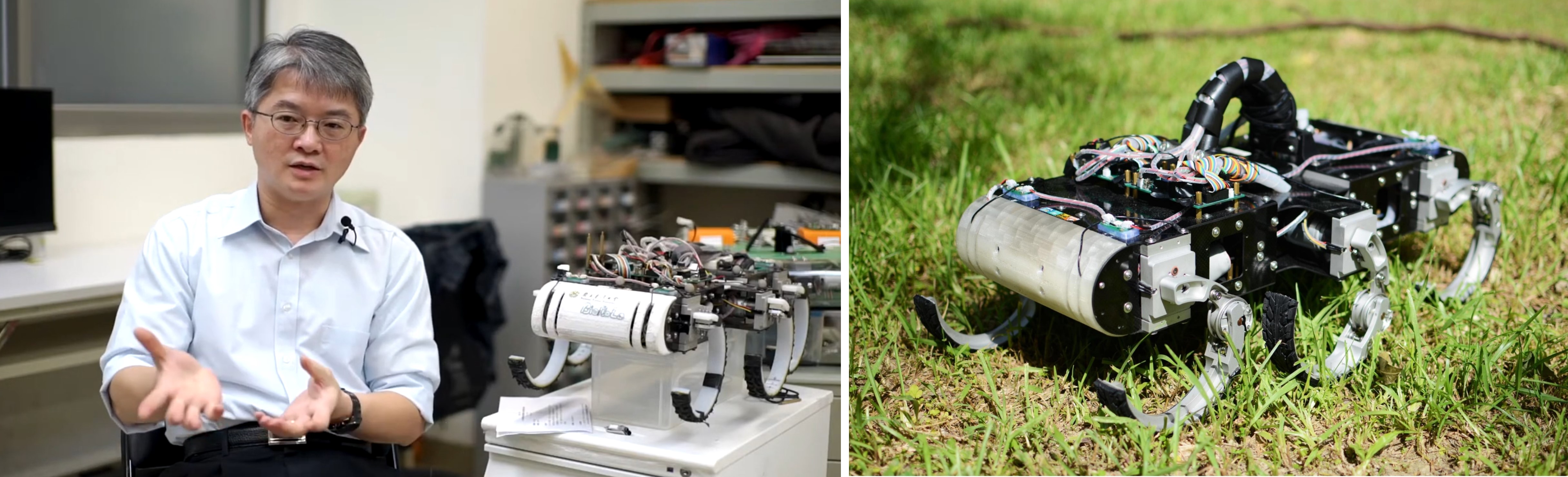 院長於台大仿生機器人實驗室時期,以蟑螂作為發想靈感,所指導開發的六足機器人