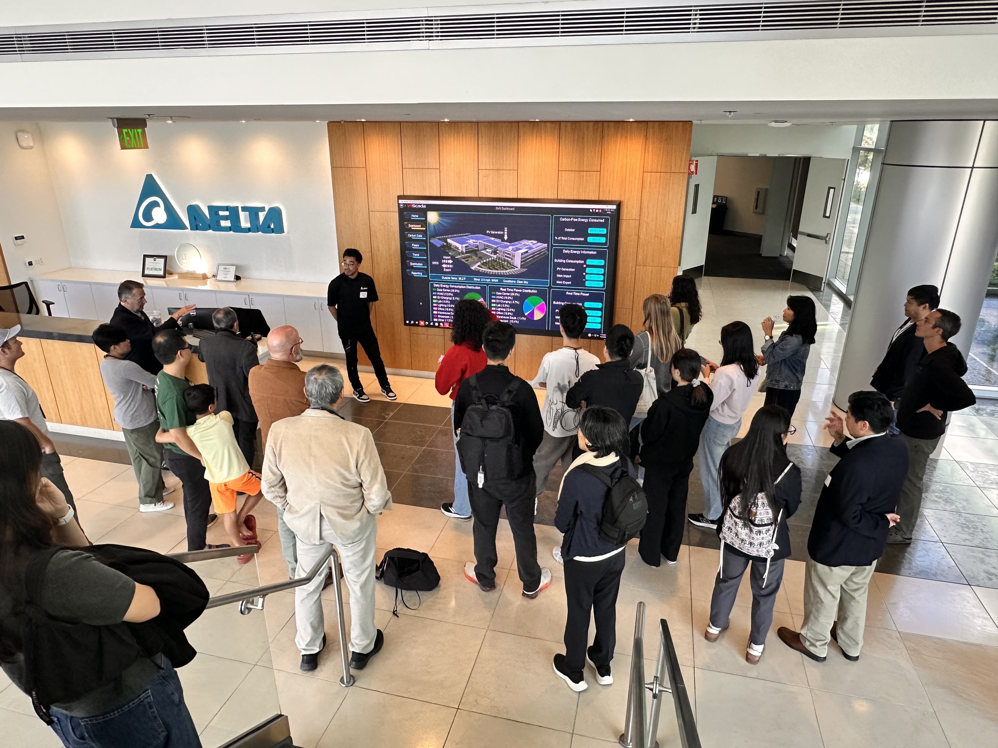 10月4日,台达美洲区于美国费利蒙 LEED 铂金级、净零碳排总部接待来自斯坦福大学 Doerr School of Sustainability “可持续学院”的约八十位师生。参访行程以介绍台达全球 ESG 承诺与可持续创新之路开场,并通过绿色建筑导览展示台达如何整合自家尖端技术与能源管理系统 “EMS”,实现全方位的绿色建筑理念与世界级可持续成果。