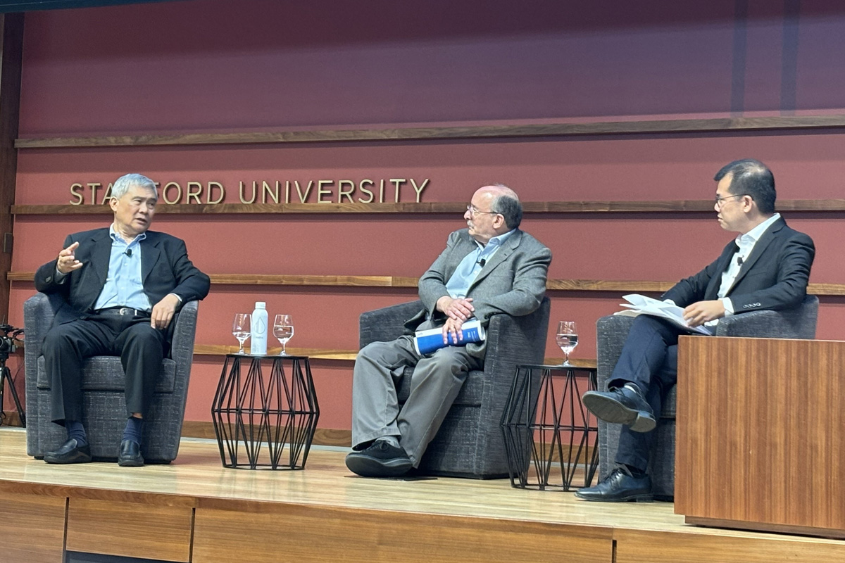 台达前董事长海英俊先生(Mr. Yancey Hai) (左1)与阿莫里・洛文斯博士(Dr. Amory Lovins)(中)及斯坦福大学教授威尔・朱(Professor Will Chueh) (右1)共同出席斯坦福大学 “Big Ideas Forum” 论坛,分享远见卓识的领导力与严谨的公司治理如何形塑台达在全球可持续发展领域的深远影响