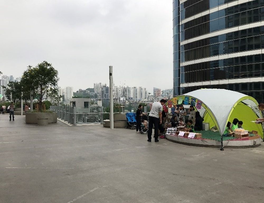 Seoullo 7017路面上有许多小商店和公共艺术装置,开放给市民团体举办活动