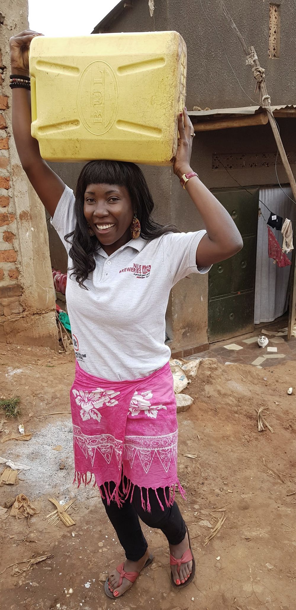 “我们从小就习惯每天走去提水。”Christine说。她是乌干达籍的志工,负责定期探访需要帮助的家庭,评估投入的补助。她告诉Mike的母亲这周会来访,但没告诉她确切是哪天,这样才能了解真实的情况。”这样就能走很远哟!”她装完一桶水后,大喝一声就把水桶横放在头上,露了一手当地女性令人叹为观止的顶上功夫。无论是布匹、大串香蕉、脸盆等,都能用这种方式顶着走。