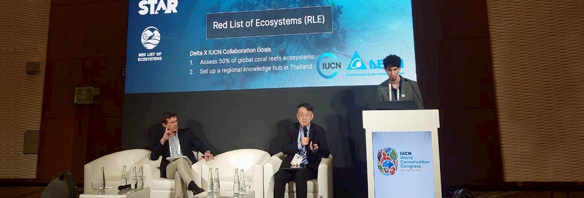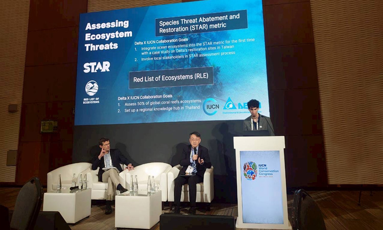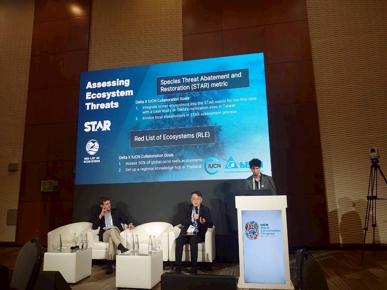 台达全球公益事务部首席执行官张杨乾受邀在世界自然保护大会多场会议发表,从企业角度分享与《昆明-蒙特娄全球生物多样性框架》对齐的实践经验,与推动自然正向投资的具体成果,并介绍物种威胁缓解与复育指标 (Species Threat Abatement and Restoration, STAR) 指标在垦丁海洋复育区的应用过程,聚焦四大面向:物种保育与野放、台达工业技术整合、复育方法与监测机制,以及全球伙伴串联,完整呈现企业如何以科技投入珊瑚物种保育和自然正向行动上的具体实践。